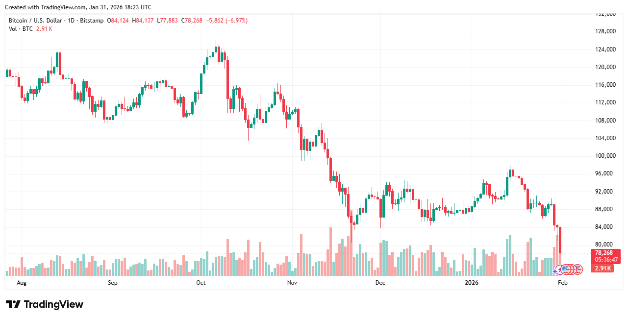 Bitcoin clôture Janvier 2026 à 78 000 $ : bilan, raisons et perspectives